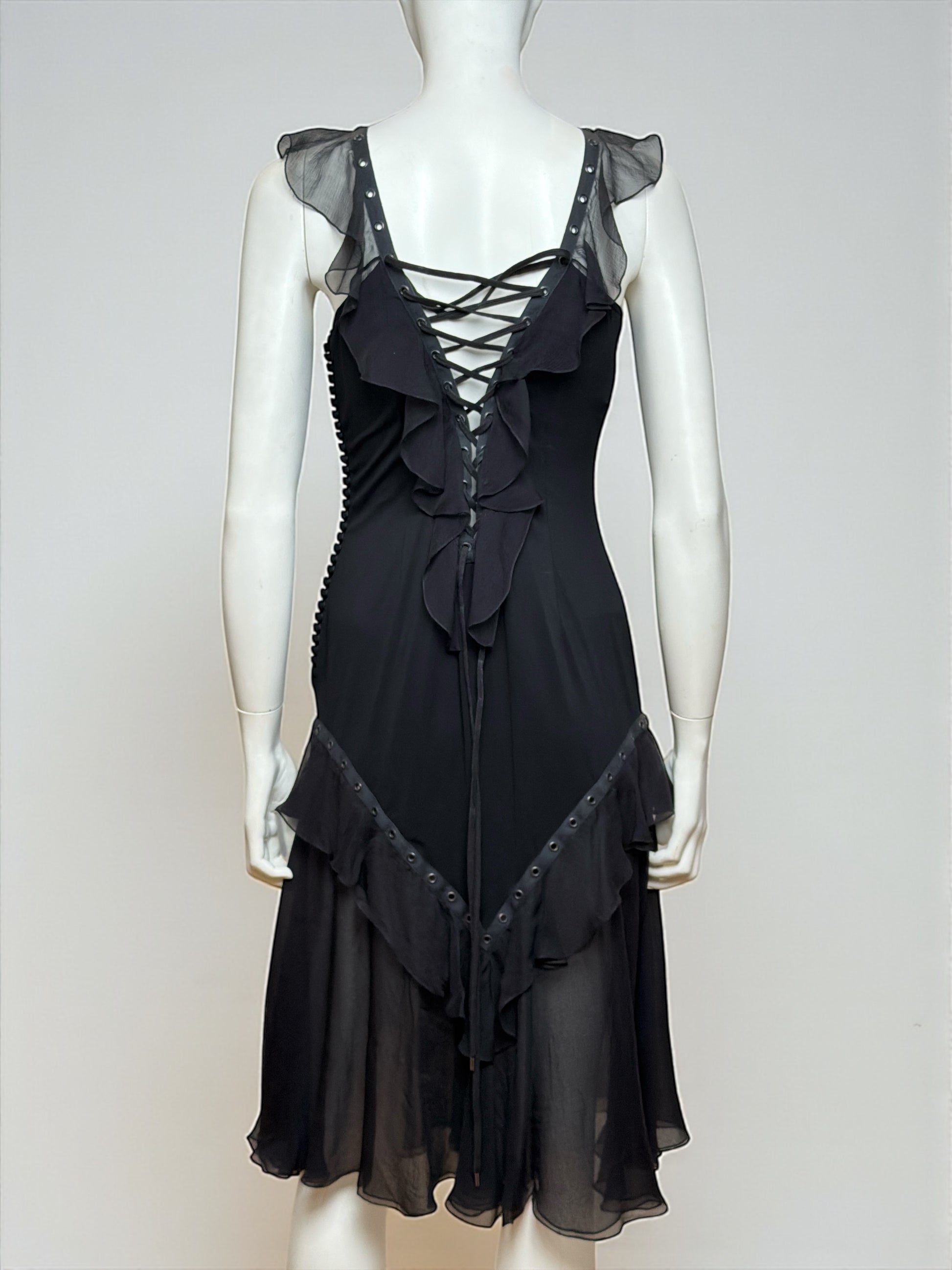 Christian Dior by John Galliano S/S 2003 Black Bondage Lace Silk Mini Dress