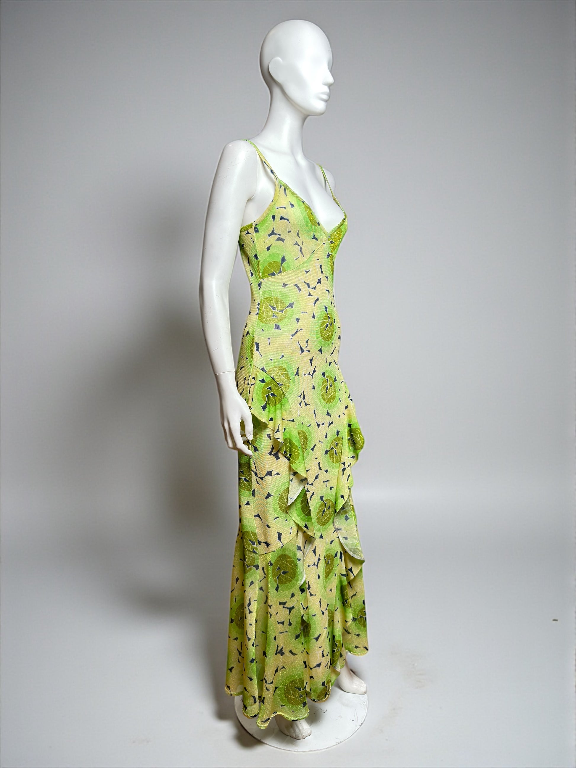 John Galliano S/S 2003 "Indian Summer" Green Lotus Jersey Tiered Ruffles Dress