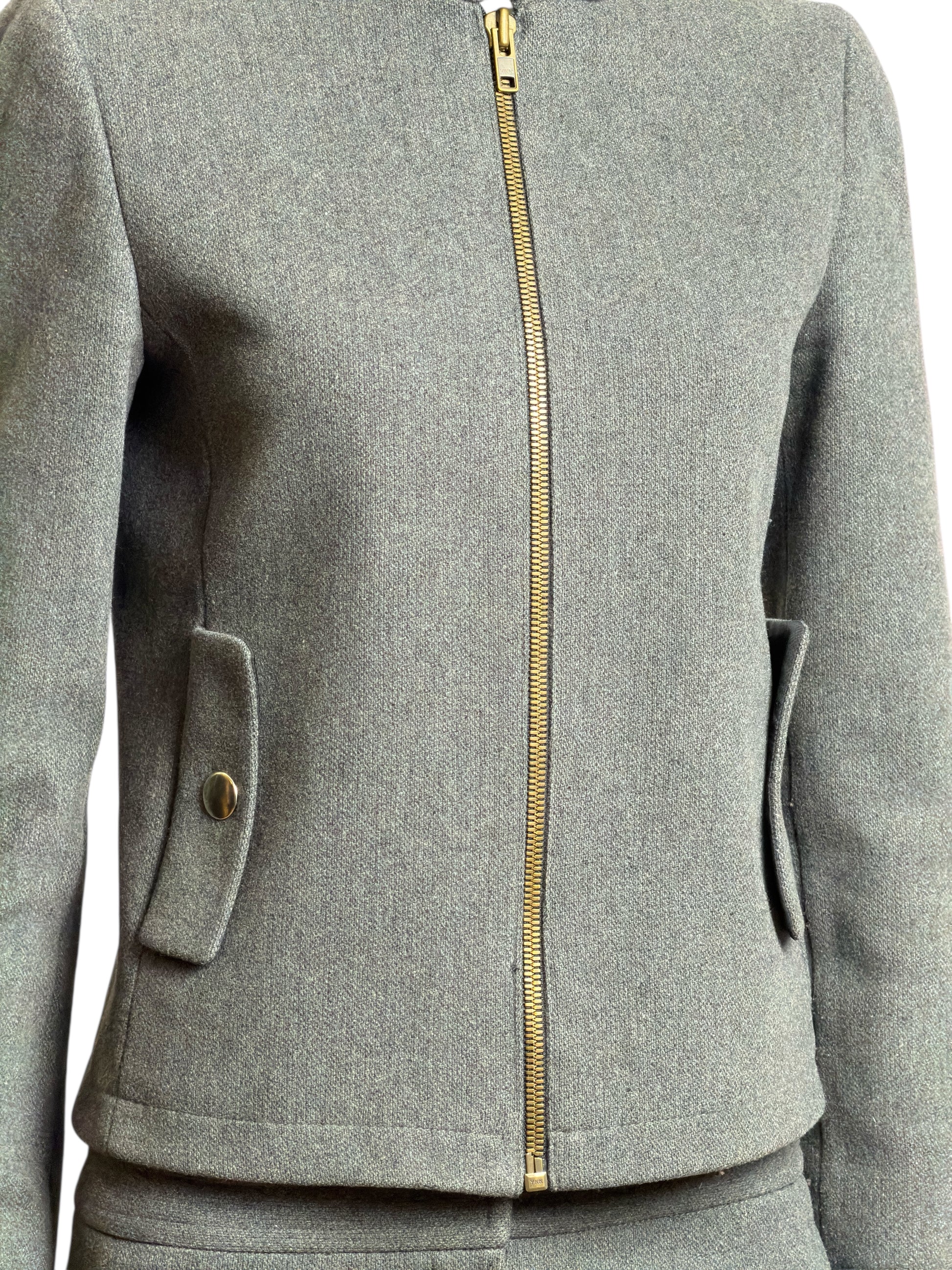 Miu Miu F/W 1999 Grey Wool Tailored Zip Jacket and Skirt Ensemble
